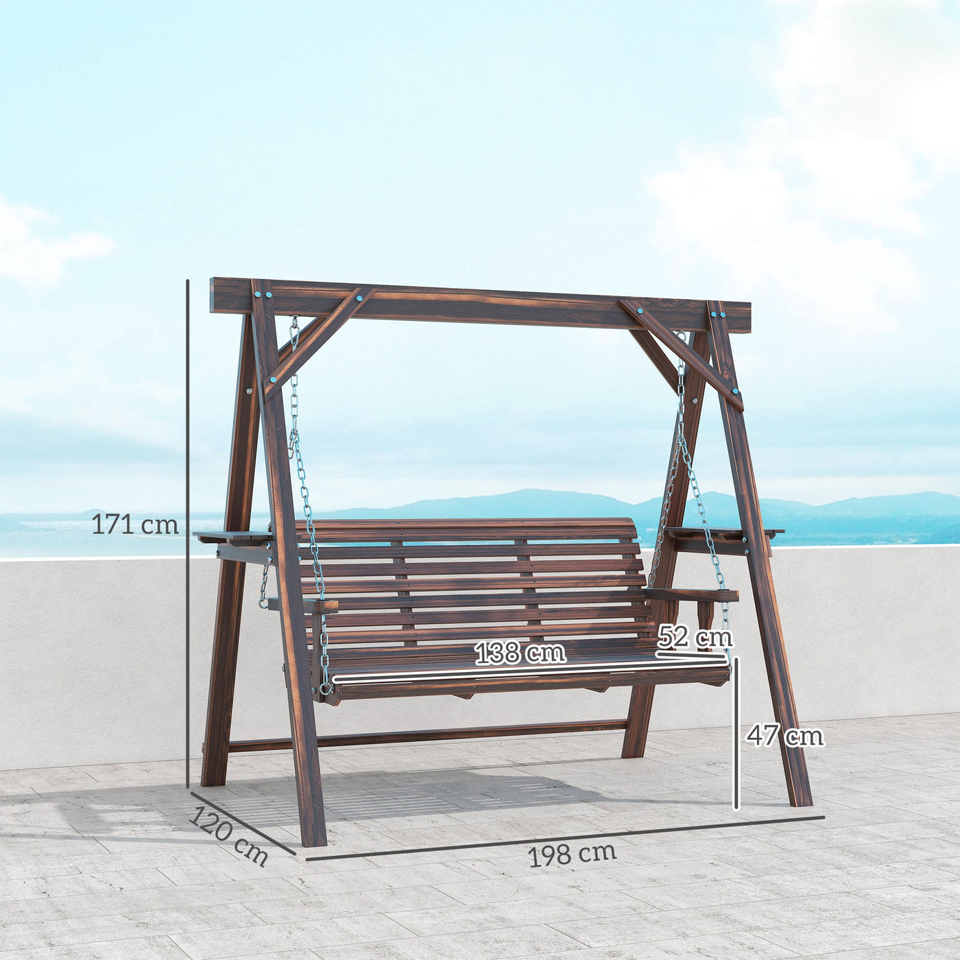 Outsunny Three-Seater Wooden Swing Bench - Carbonised finish