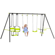 Outsunny Metal Garden Swing Set with Double Swings, Glider, Swing Seats - Green