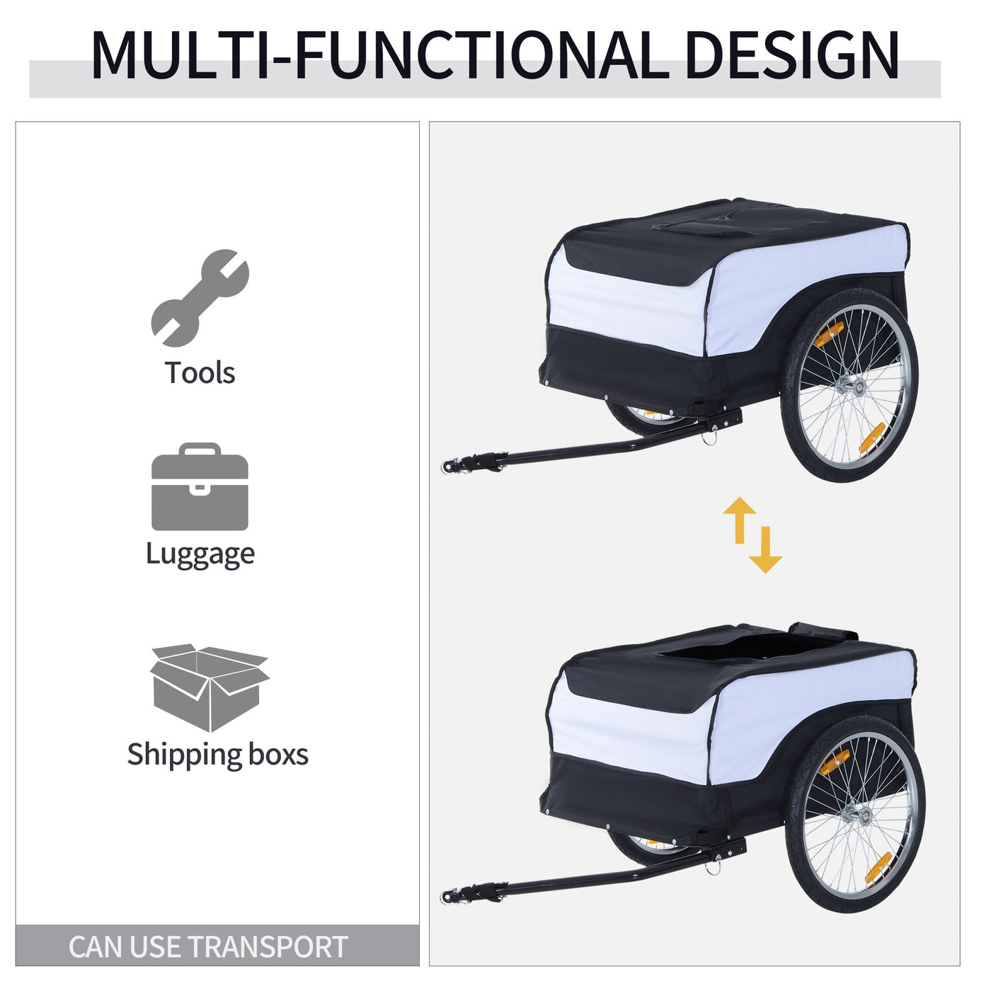 HOMCOM Bike Trailer Cargo in Steel Frame Extra Bicycle Storage Carrier with Removable Cover and Hitch (White and Black) - White and Black