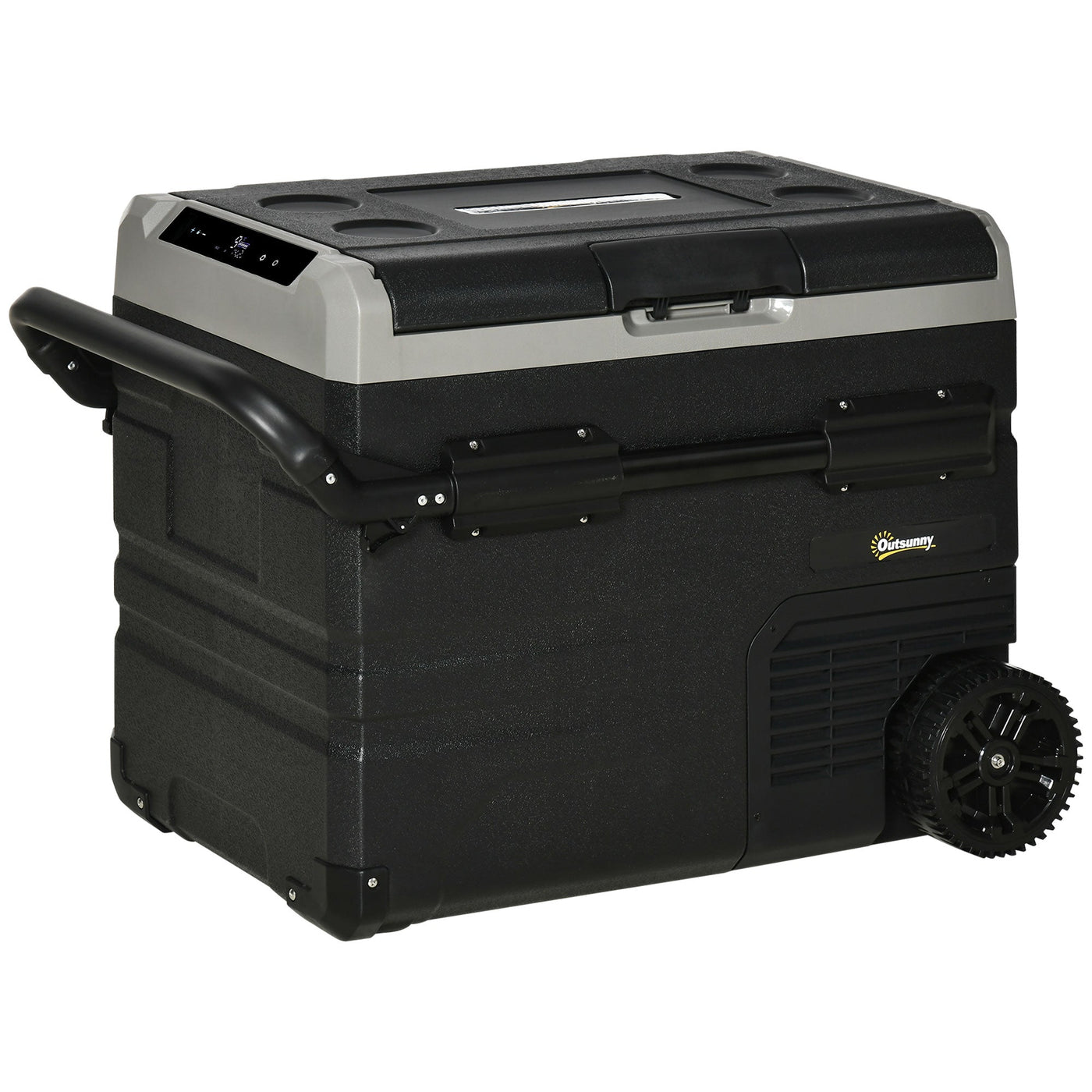 Outsunny 50L Car Refrigerator, Portable Compressor Cooler Box, Fridge Freezer w/ Inner LED Light, Foldable Handles, Cup Holders, 12/24V DC and 110-240V AC for Campervan RV Boat Travel Down to -20℃ - Black, Grey