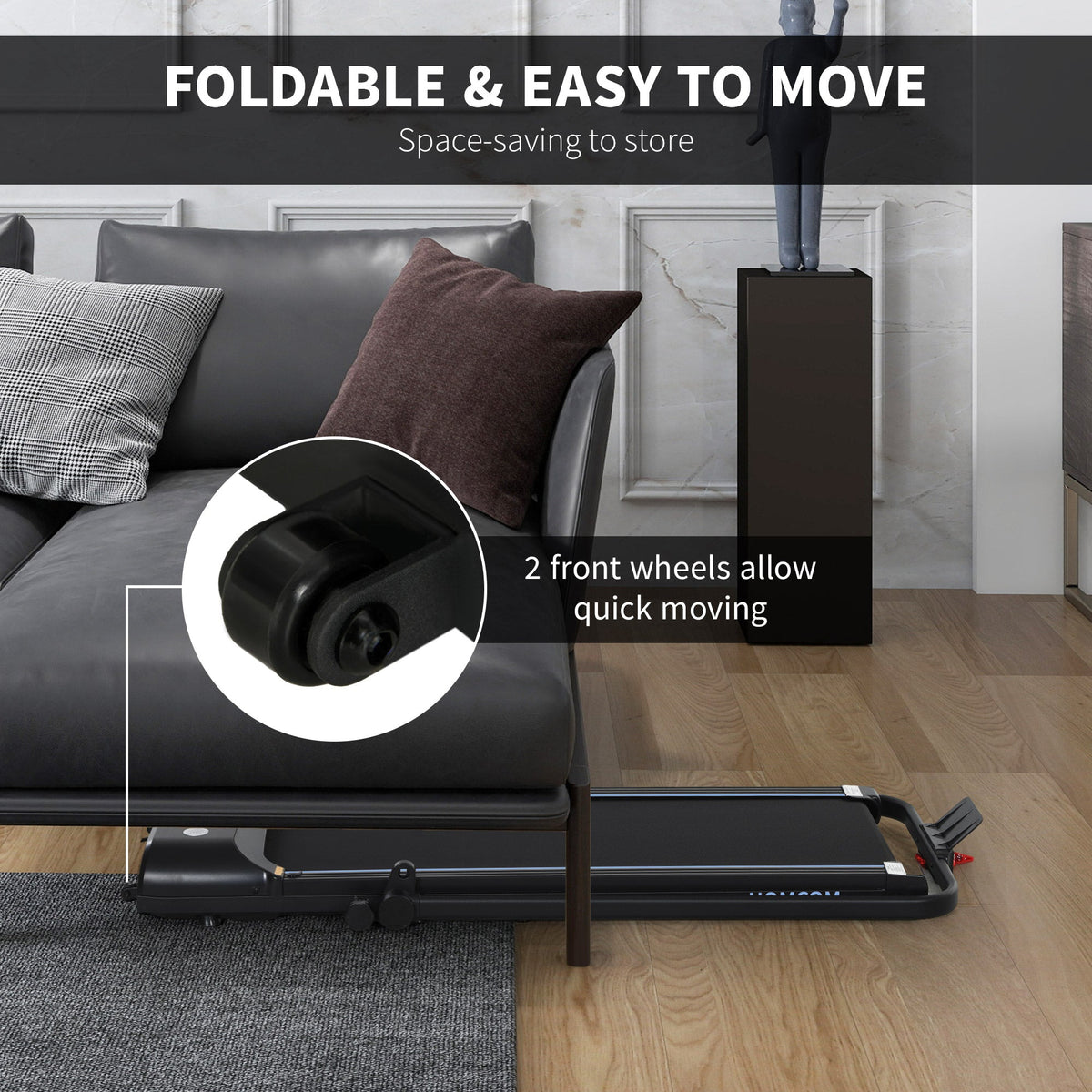HOMCOM Foldable Walking Treadmill, with LED Display and Wheels, for Home, Office, Gym, Blue - Blue