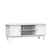 HOMCOM TV Unit up to 55", 2 Doors TV Cabinet with Open Storage Shelves and Cable Management for Living Room, Bedroom, Entertainment Room, 120L x 45W x 50.5H, White - White
