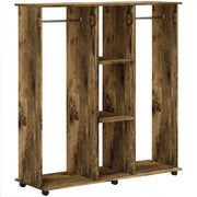 HOMCOM Open Wardrobe Double Mobile Storage Shelves Organizer W/6 Wheels-Rustic Brown - Rustic Brown