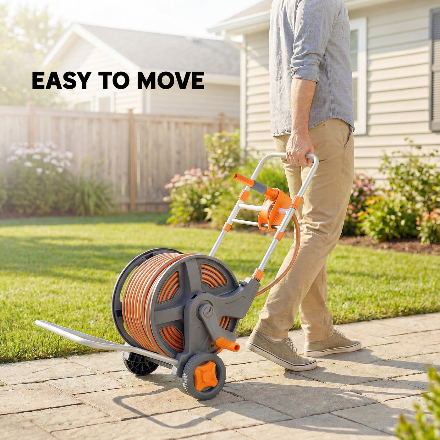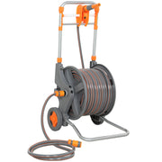 Outsunny Hose Reel Cart with Wheels, 45+2m Garden Hose Reel with 2 Patterns Nozzle, Faucet Adaptors and Rewind Handle, Orange - Orange