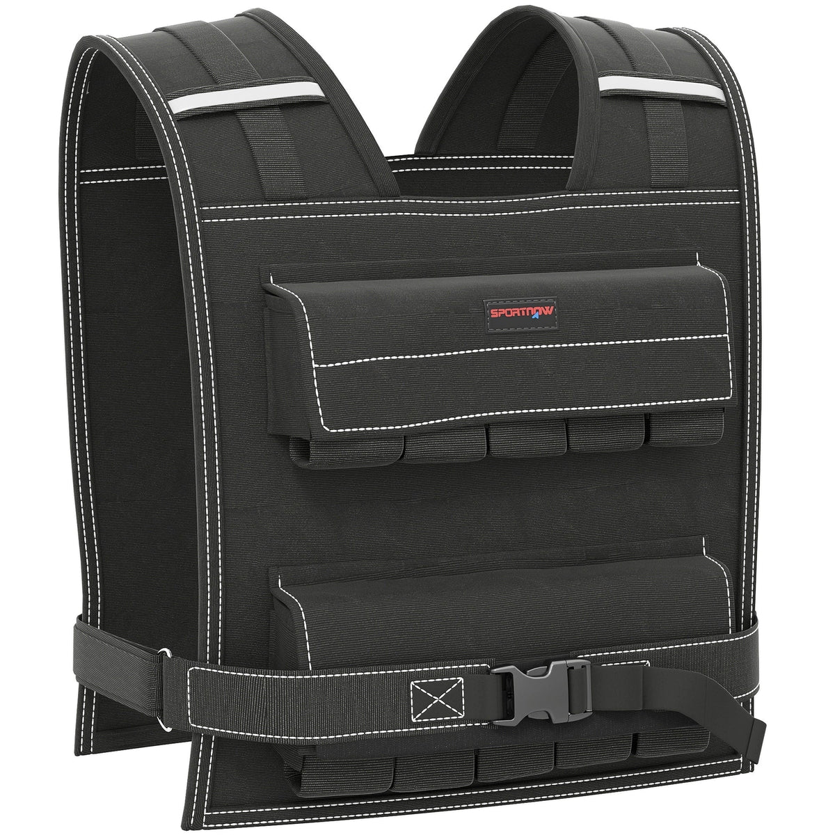 SPORTNOW 20KG Adjustable Weighted Vest, Running Weight Vest, with 30 Metal Weights, Reflective Strips, for Running, Exercise - Black
