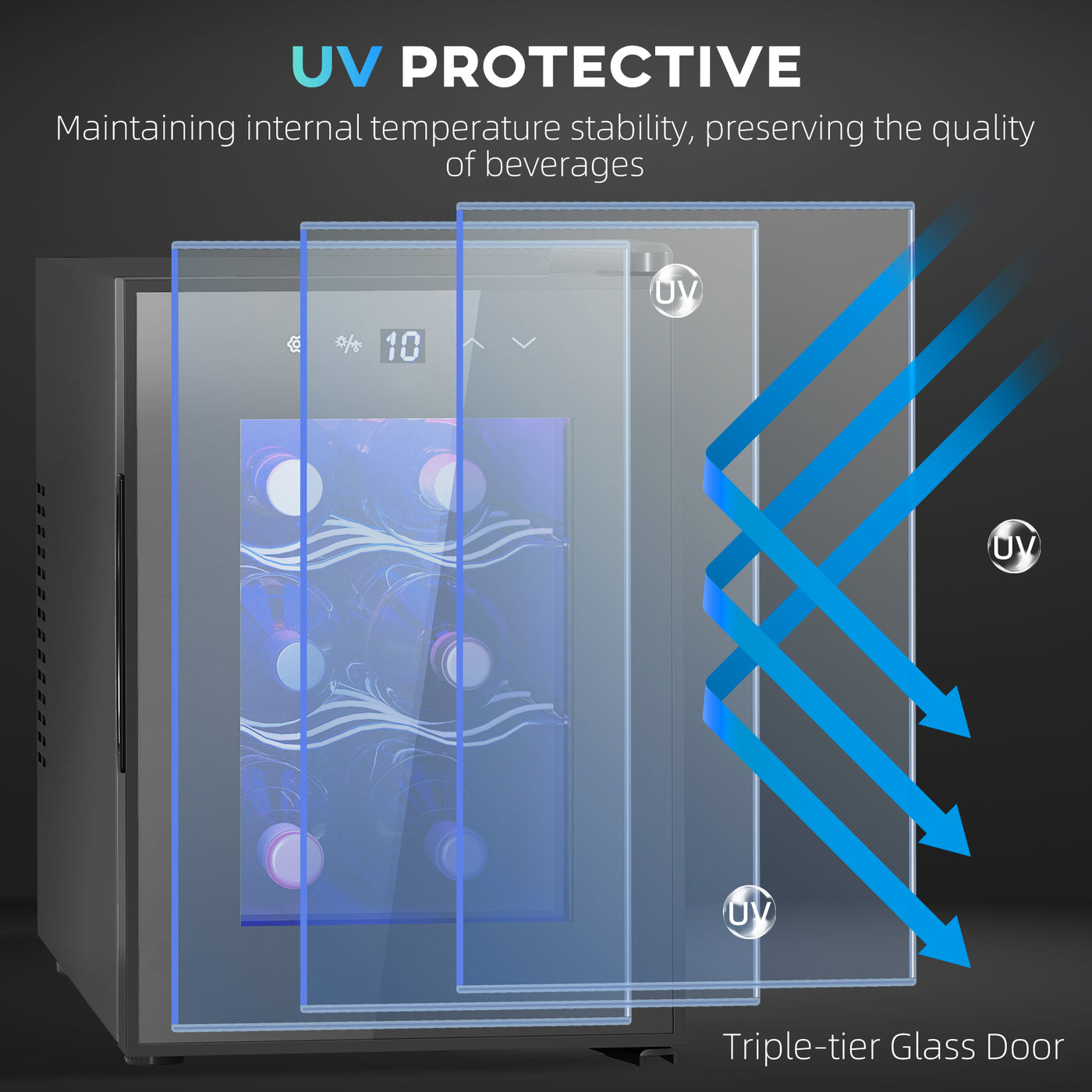 HOMCOM Six Bottle 8-18℃ Countertop Wine Fridge - Black - Black