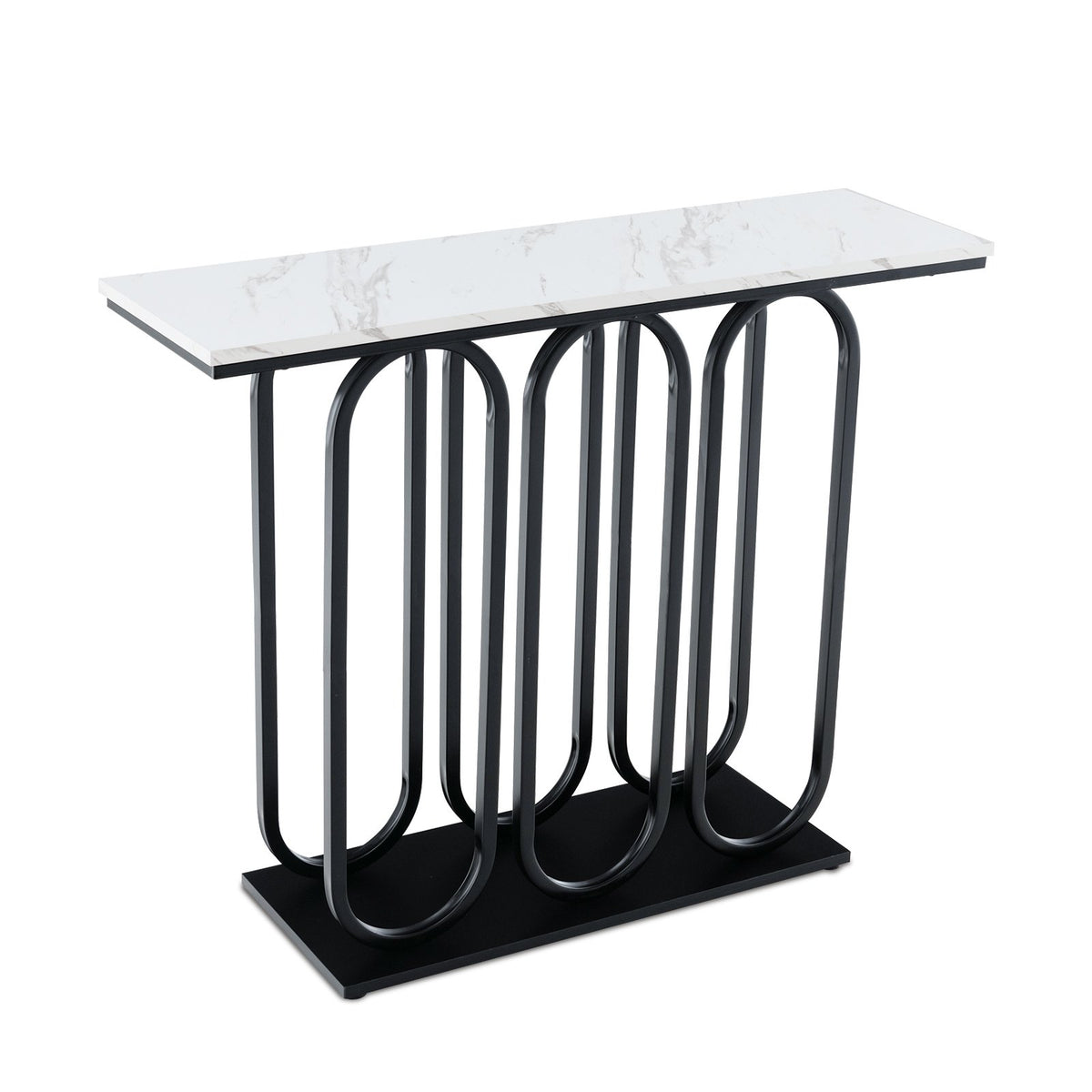 100 CM Faux Marble Entryway Table with Adjustable Foot Pads-Black
