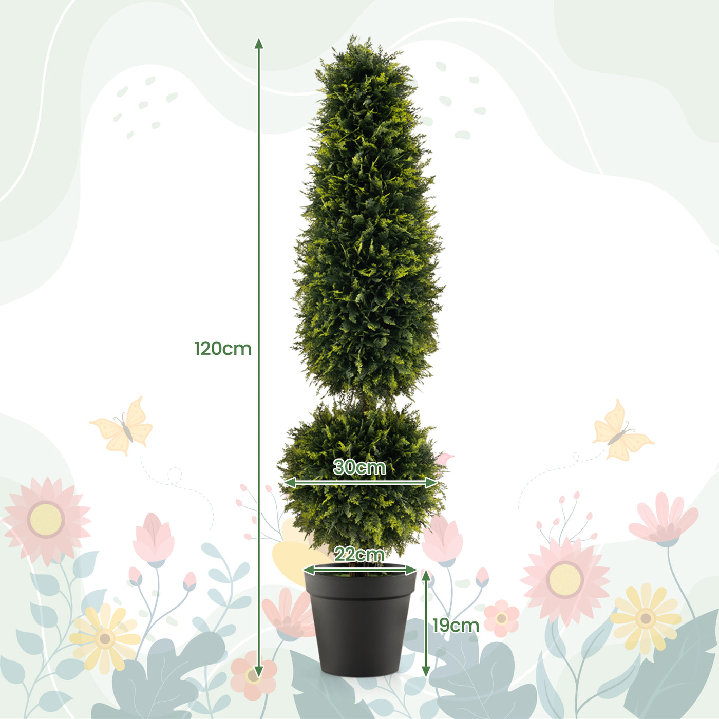 Colour: Green and Black Material: Natural Vine, PE, Nylon, Metal, PP, Cement Overall Height: 120 cm Diameter of Topiary Ball: 30 cm Dimension of Flowerpot: 22 x 22 x 19 cm (L x W x H) Net Weight: 5 kg Gross Weight: 7 kg Box Qty:1(May vary by batch)Package Includes: 1 x Artificial Topiary Tree