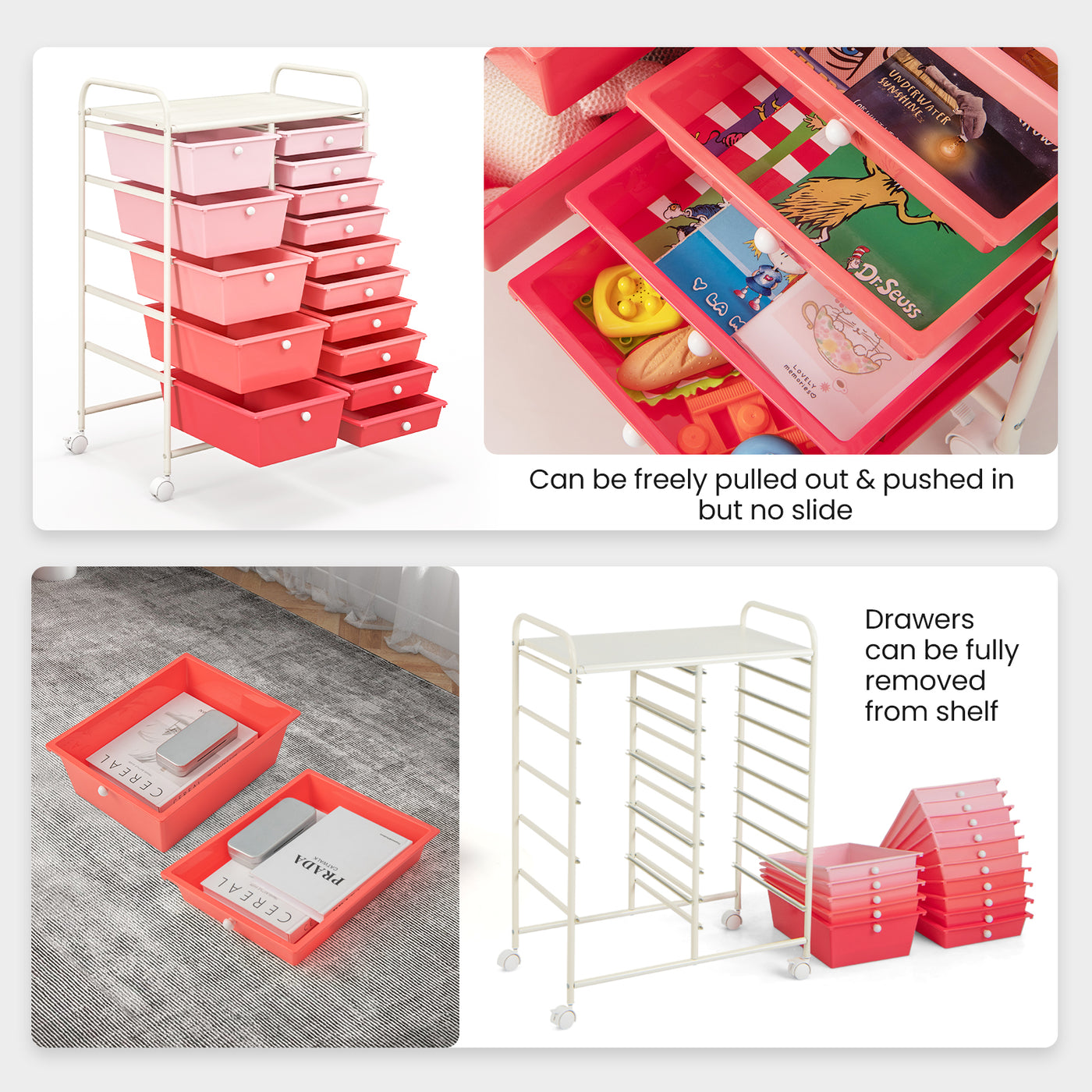 15 Drawer Rolling Storage Cart with 4 Wheels for Beauty Salon-Pink