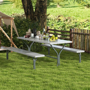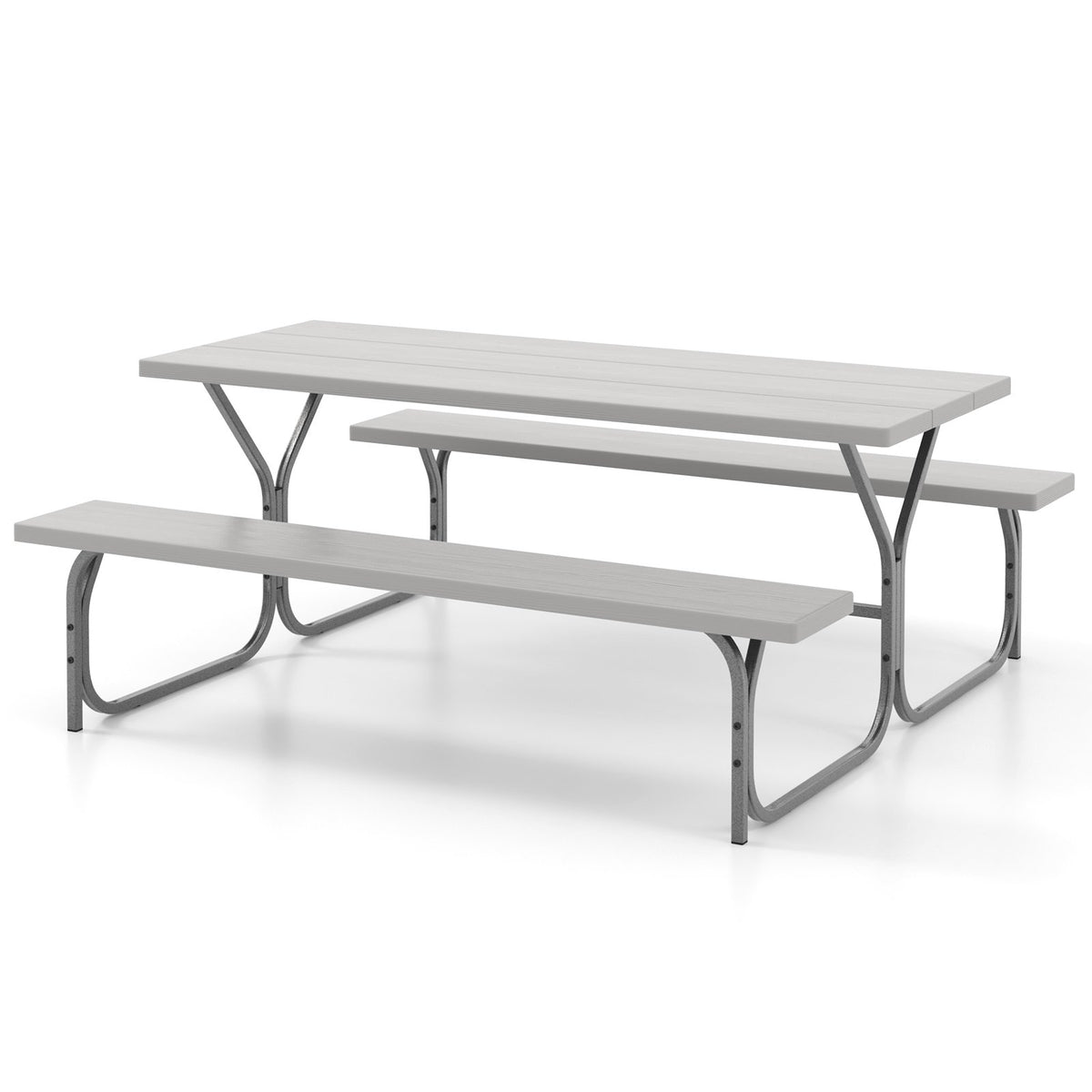 183 cm Picnic Table Bench Set with Umbrella Hole for Patio Garden Yard Poolside Party-Grey