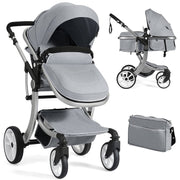 2 in 1 Foldable Baby Stroller with Rain Cover and Mosquito Net-Grey