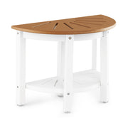 With a strong load capacity of 150 kg and non-slip feet, you can safely sit on this shower bench to have a shower or shave legs. It is a great shower helper for the elderly or people who are unable to stand for a long time. Made of premium HDPE material, this shower stool has good water resistance, mold resistance and is not easy to deform for years of use. Besides, the bottom shelf provides additional storage space for your shower items. And the slatted shelves are helpful for water drainage and air drying. Moreover, the shower stool can also be used as a shoe bench, side table, etc to meet various needs. Selected HDPE Material: Unlike others that are made of wood/bamboo/MDF, this shower bench is crafted from high quality HDPE material which is water-resistant, mold-proof and not easy to deform. Thus, it ensures low maintenance as well as long-lasting use. 2-Tier Large Storage Space: Featuring a spacious top and bottom open shelf, this 2-tier shower stool offers more storage space but takes up less floor space. It is roomy enough to place your bath towels, shampoos, body washes, decorations, etc. Semicircle Seat and Slatted Design: The semicircle top with smooth edges offers a comfortable seat for you to take a shower or shave legs. Moreover, the shower bench adopts a slatted design which facilitates drainage and ventilation. Stable and Non-slip Structure: The reinforced structure and firm connection make the shower seat strong enough to hold up to 150 kg. In addition, the anti-slip foot pads not only enhance stability, but also protect the floor from scratches. Versatile Use and Easy Assembly: This elegant and practical semicircular shower bench is suitable for various occasions, such as bathroom, bedroom, living room, hallway and more. What's more, with clear instructions, it can be assembled in a short time.