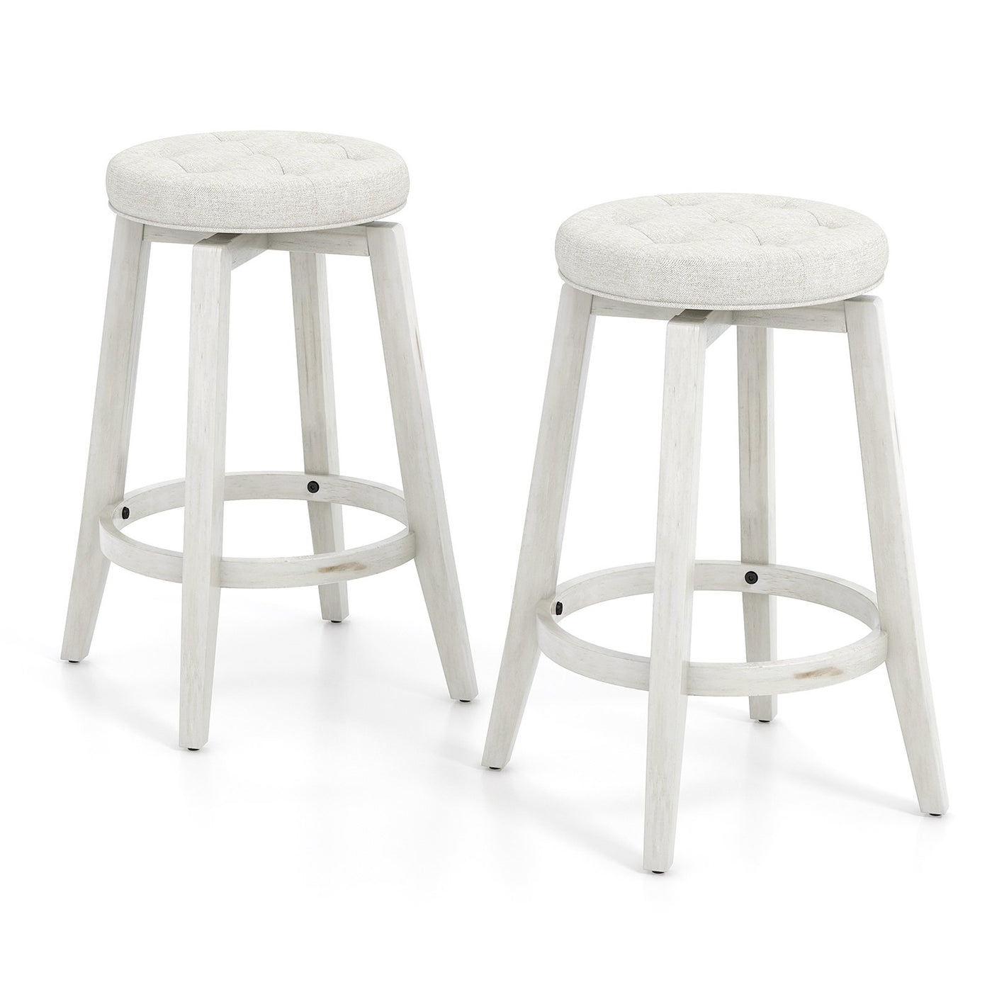 360° Swivel Upholstered Bar Stool Set of 2 with Footrest-White