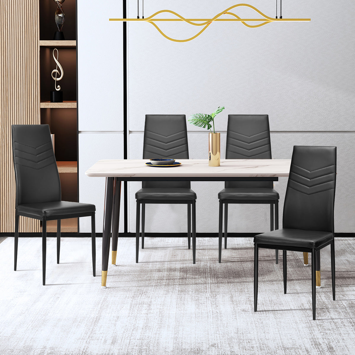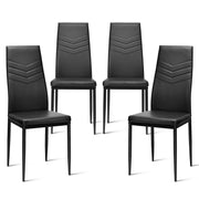 Color: BlackMaterial: Metal, sponge, PVC materialOverall dimension: 40.5cm L √ó 52cm W √ó 99cm HNet weight of each chair: 4 kgsWeight capacity of each chair: 150 kgsPackage includes: 4 x Dining chair1 x Instruction Box Qty: 1(May vary by batch)