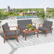 4 Piece Outdoor Conversation Set with Soft Seat and Back Cushions-Grey