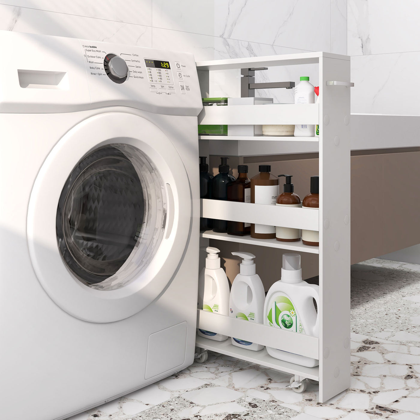 Colour: White Material: Engineered Wood, Metal Overall Dimension: 47 x 13 x 80 cm (L x W x H) Net Weight: 5.5 kg Weight Capacity of Upper & Middle Shelf: 5 kg Weight Capacity of Bottom Shelf: 10kg Box Qty:1(May vary by batch)Package Includes: 1 x Slim Storage Cart 1 x Instruction Manual