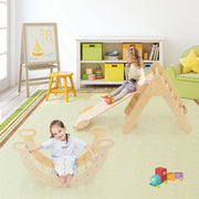 Allow kids to explore different fun with this wood climbing triangle set! Including a climbing triangle, a climbing arch and a ramp, this playset creates endless fun for children. The climbing triangle and arch can be used separately. Likewise, they can be combined with the ramp. Designed with 2 different sides, the ramp provides toddlers with varying experience of climbing and sliding. Similarly, the climbing arch can be changed into a rocker once turned over. The Montessori climbing set will accompany kids for many years thanks to the solid wood construction. Furthermore, the burr-free surface and the smooth edges protect kids' delicate skins. Both intelligence and physical strength will be improved with this triangle climbing set. Diverse Combination Modes: This Montessori climbing set consists of 1 climbing triangle, 1 climbing arch and 1 ramp. All of these parts can be used together or separately according to the kids' preferences. The varying combinations contribute to unlimited fun. Durable Material and Safe Design: Made of natural beech wood that is durable and safe, the wood climbing gym promises a longer service time. What's more, the edges are polished smooth and the surface is burr-free. Thus, toddlers can play with this triangle climbing set safely. 2-in-1 Climbing Ramp and Arch: Featuring a double-sided design, the ramp allows children to slide or climb as they like. When combining the ramp with the climbing triangle, you can offer different height options for your kids. Moreover, you are able to alter the climbing arch to a rocker by turning it over. Solid and Reliable Construction: The climbing triangle, climbing arch and ramp are designed with stable structures, avoiding kids from falling down while playing. More importantly, the firm connections enhance overall stability. With the ASTM and CPSIA certifications, the playset is more reliable. Perfect Gift for Toddlers: The wooden climbing toys set is a perfect gift for kids over 1-year-old. Children can promote their balance, learning, social and other skills when they play with the wooden climbing triangle set.