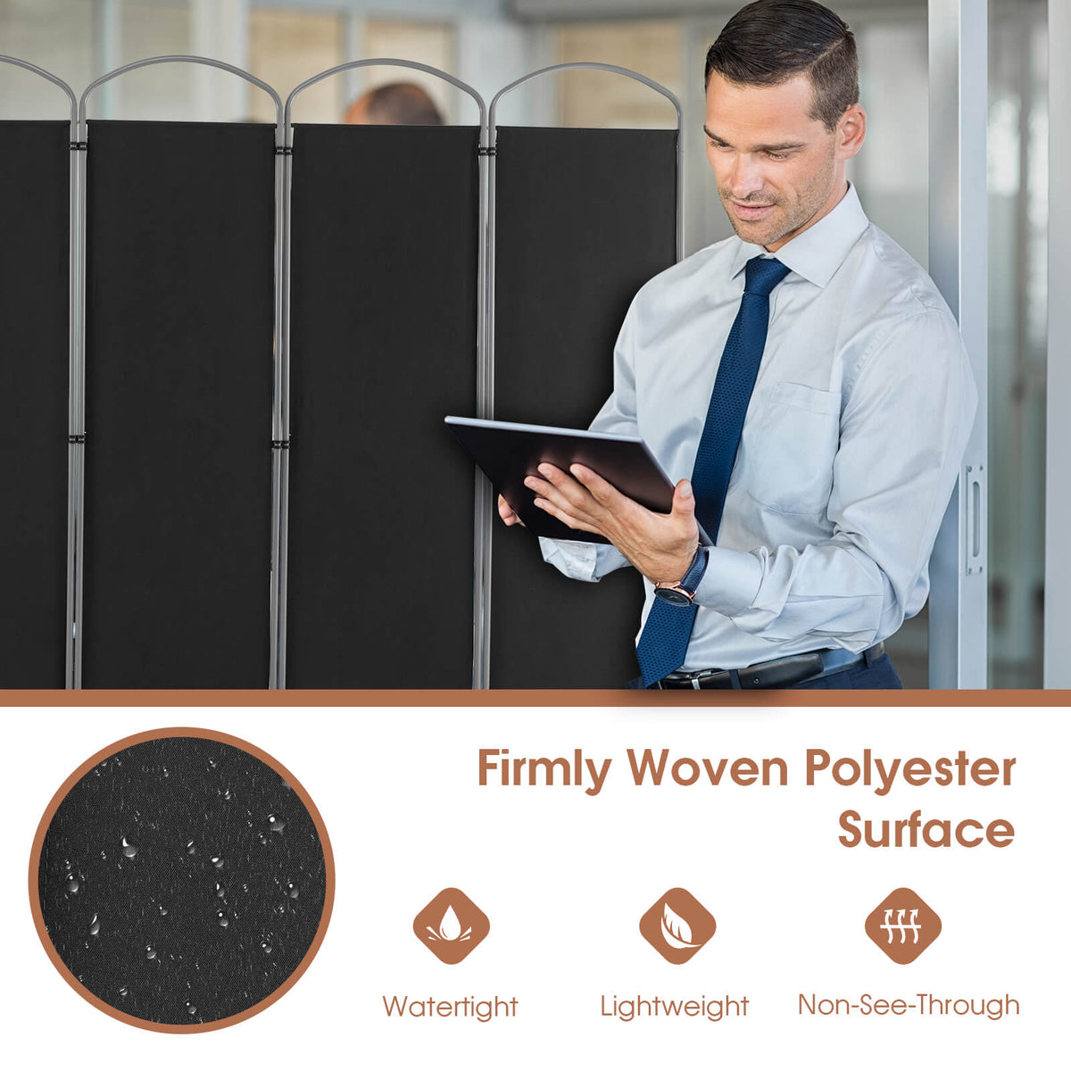 The 6-panel folding room divider is perfect designed to separate the room into different areas and create a private space. Made of premium polyester fabric and supported by metal frame, the privacy screen is characterized by great durability and wear resistance. Considering convenient use, the panel divider can be easily turned either direction or folded up flexibly according to your needs. In addition, its elegant design will perfectly match well with other furniture and add aesthetic beauty to your living surroundings, whether in home, office, hotel, school, and hospital. If you are looking for a room divider like this, do not hesitate to place an order! More Privacy Space for You: Measuring 331cm in length and 188cm in height, the privacy screen is large enough that can section off the room into personalized space. In this way, you are capable of avoiding distractions when working or studying. More, the folding room divider can create a temporary sleeping or study space. A Variety of Folding Options: Thanks to the connect buckle between each panel, this 6-panel room partition allows you to adjust it to arranged into various shapes as per your preference, such as L-shaped and W-shaped. Additionally, the freestanding room screen can be folded up for storage, saving much space. Selected Material and Reliable Structure: Made of premium polyester fabric, the panel privacy partition is a firm and well made piece that combines lasting durability and wear resistance. Thickened metal frame is characterized by superior stability and reliable support. Plus, solid connection and exquisite craftsmanship will serve you better. Chic Style and Practical Use: This multipurpose screen panel is a perfect addition to home, office, hotel, school, and hospital. No matter you want to get a divider to section off the home office area, block the sunshine and decorate room, In addition, the folding room divider will be of great satisfaction. Simple Assembly and Maintenance: Under the detailed guidance of instruction, you are sure to figure out how to put all parts together. All hardware and parts are given the number to help you shorten assembly time. More, smooth surface of the privacy room separator saves much time in daily maintenance.