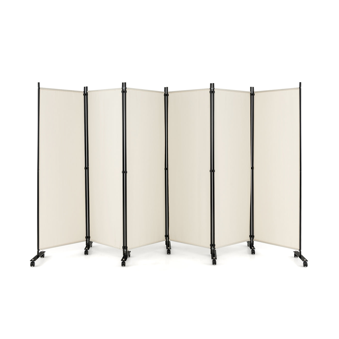 6 Panel Room Divider on Wheels-White
