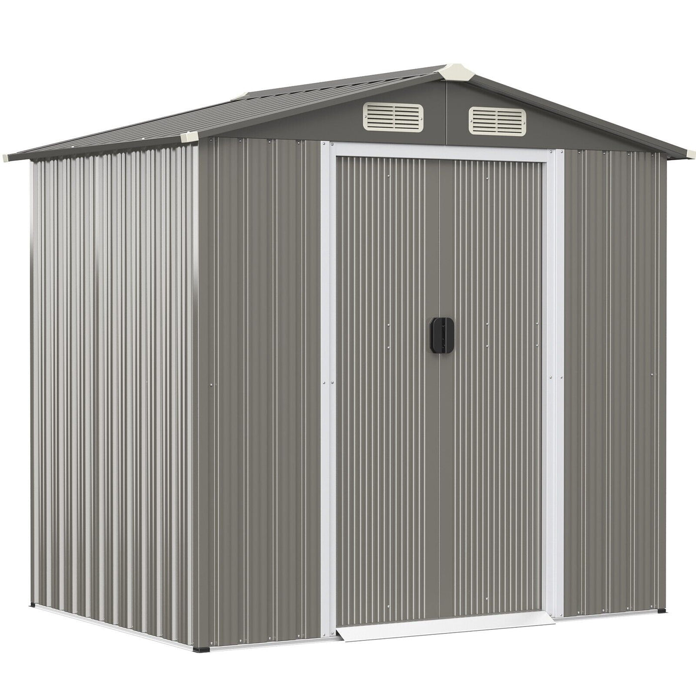 6 x 4 Feet Outdoor Metal Storage Shed with Ventilation Sliding Doors-Light Grey