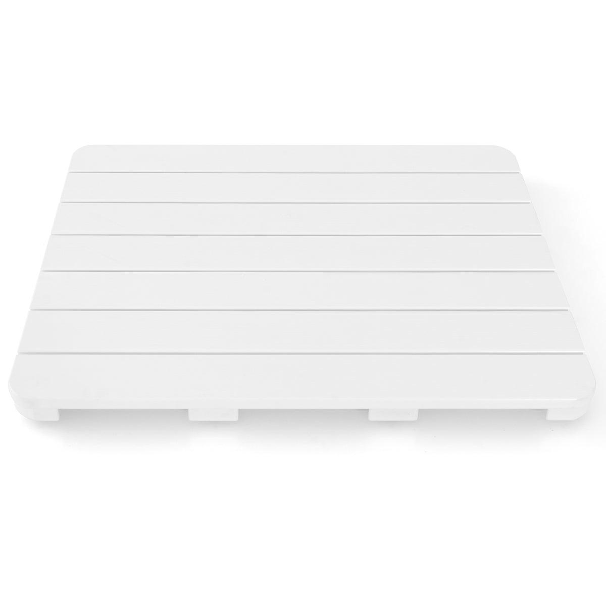 Do you wish there was a solution to keep your bathroom floor dry and safe? This HIPS bath mat is the perfect answer for you! The bath mat is crafted from high-quality HIPS material, known for its high strength and excellent resistance to water, mold, corrosion and deformation. The screws used in its construction are made from 304 stainless steel, ensuring durability and rust resistance. Bottom anti-slip rubber foot pads provide excellent grip and prevent the mat from moving, even on wet tiles. Additionally, the surface of the shower mat features fine grooves, offering an extra layer of slip resistance. What's more, the unique slatted design of this bath mat allows for easy drainage, ensuring that water does not accumulate on its surface. Please wipe clean the surface and air dry in an upright position after each use. If you are looking for a bath mat like this, do not hesitate to place an order! High Quality HIPS Material: Instead of using wood and bamboo, this shower mat made of top-notch HIPS material is environmentally friendly, waterproof, mold-proof and non-deformable for long-lasting use. Upgraded Non-slip Design: The anti-slip textured surface and non-slip rubber foot pads of the bath mat allow you to enjoy a cozy and safe shower experience. Plus, connected by premium 304 stainless steel screws, the shower mat is sturdy and can hold weights up to 150 kg. Wide Range of Application: This waterproof and non-slip floor mat is ideal for indoor and outdoor use. It will be a perfect addition to your shower room, bathtub, poolside, entryway, backyard, etc. Superb Craftsmanship: The shower mat features rounded and smooth edges for added security and slatted design for better drainage. Please note: the color difference may occur between different lights and monitors. No Assembly and Low Maintenance: The spa floor mat comes already assembled, so you can simply take it out of the box and use it. To prolong the service life, please remember to keep it dry after use and you can set the mat upright to dry faster.