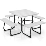 8-person Square Picnic Table Bench Set with 4 Benches and Umbrella Hole-White