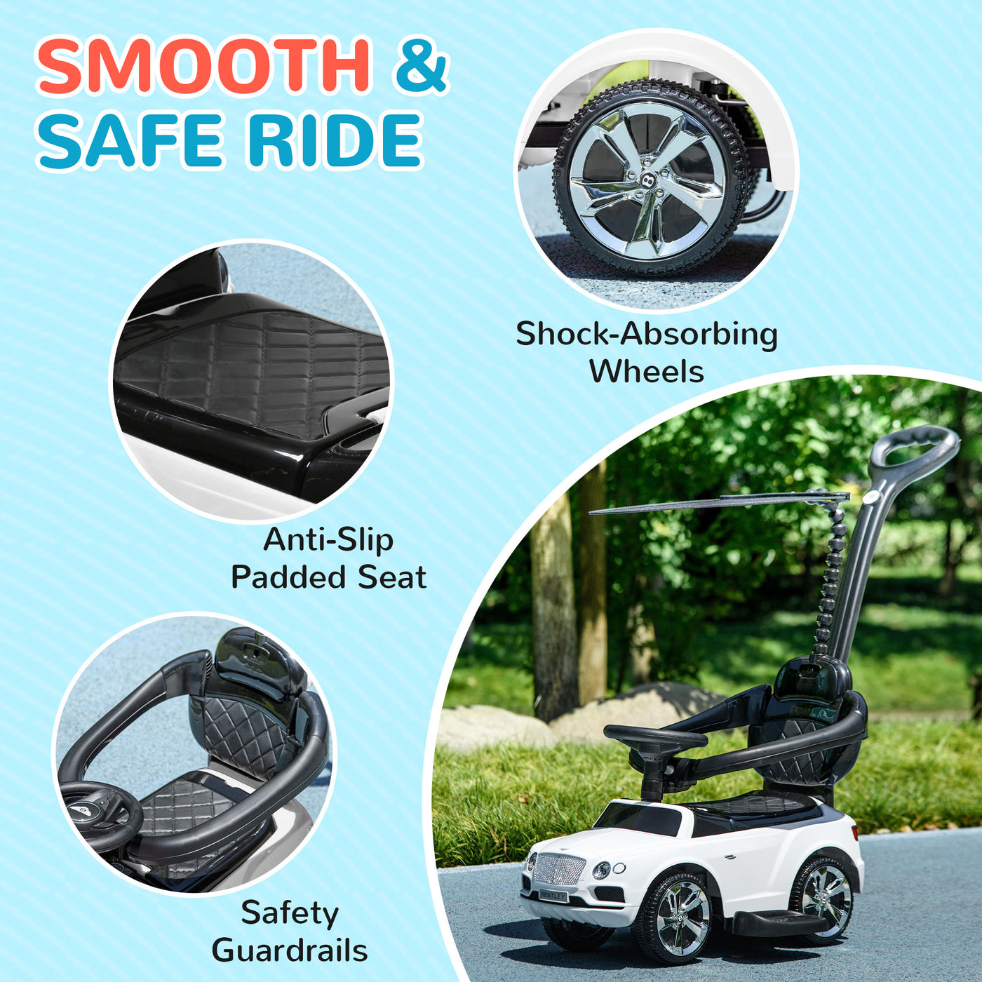 AIYAPLAY Bentley Bentayga Licensed 3-in-1 Baby Push Car, Ride on Car Sliding Car with Canopy, Horn Music - White - White