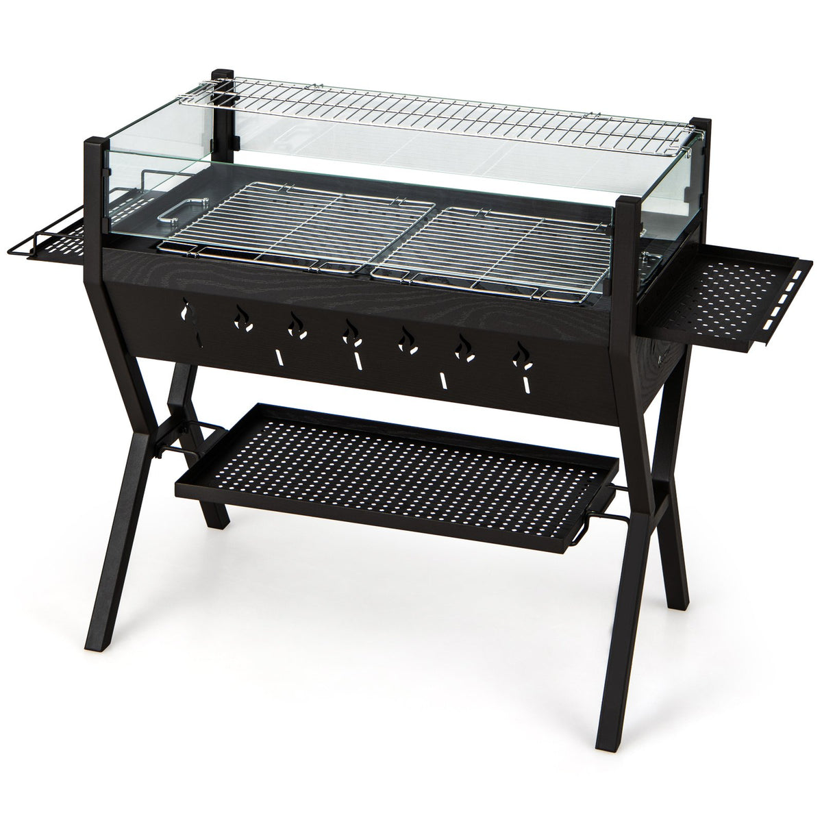 Barbecue Charcoal Grills with Wind Guard and Seasoning Racks-Black