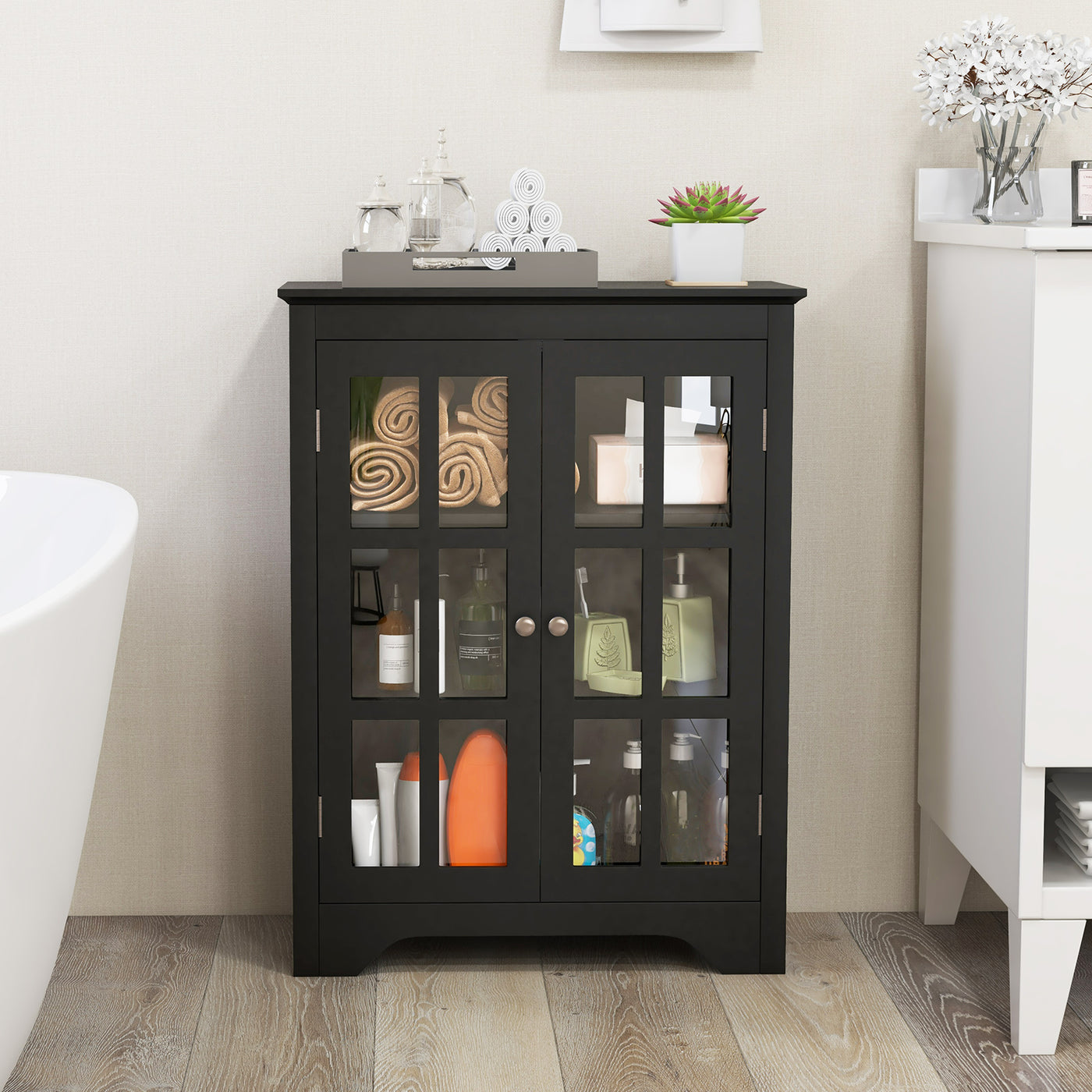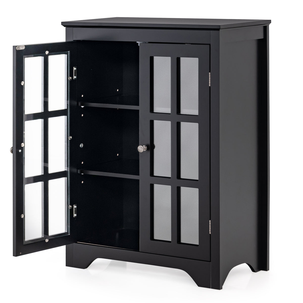 Bathroom Floor Cabinet with 2 Glass Doors and Adjustable Shelves-Black