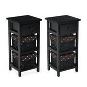 Bedside Table Made of Paulownia Wood in Country House Style-Black-2 Pieces