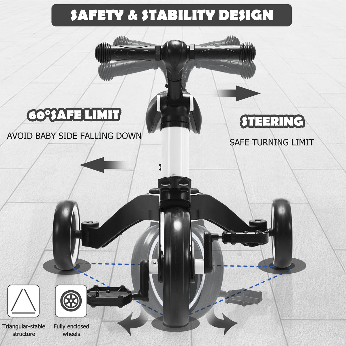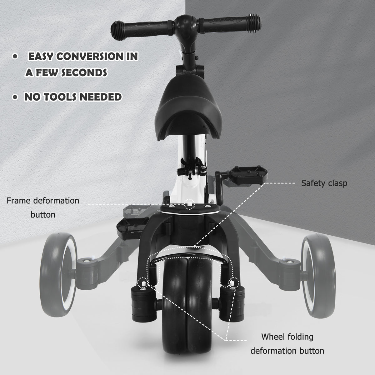 Convertible Balance Bike Kids Trike with Detachable Pedal for 1-4 Years Old Kids-White