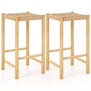 Dining Stool Set of 2 with Rubber Wood Frame and Woven Paper Seat-36 x 36 x 65cm
