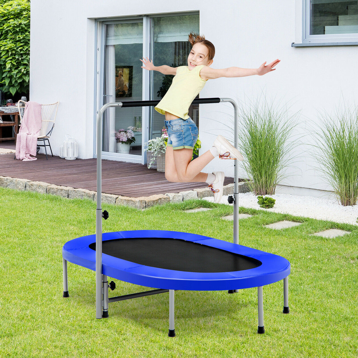 Double Foldable Fitness Trampoline with Adjustable Handrail-Blue