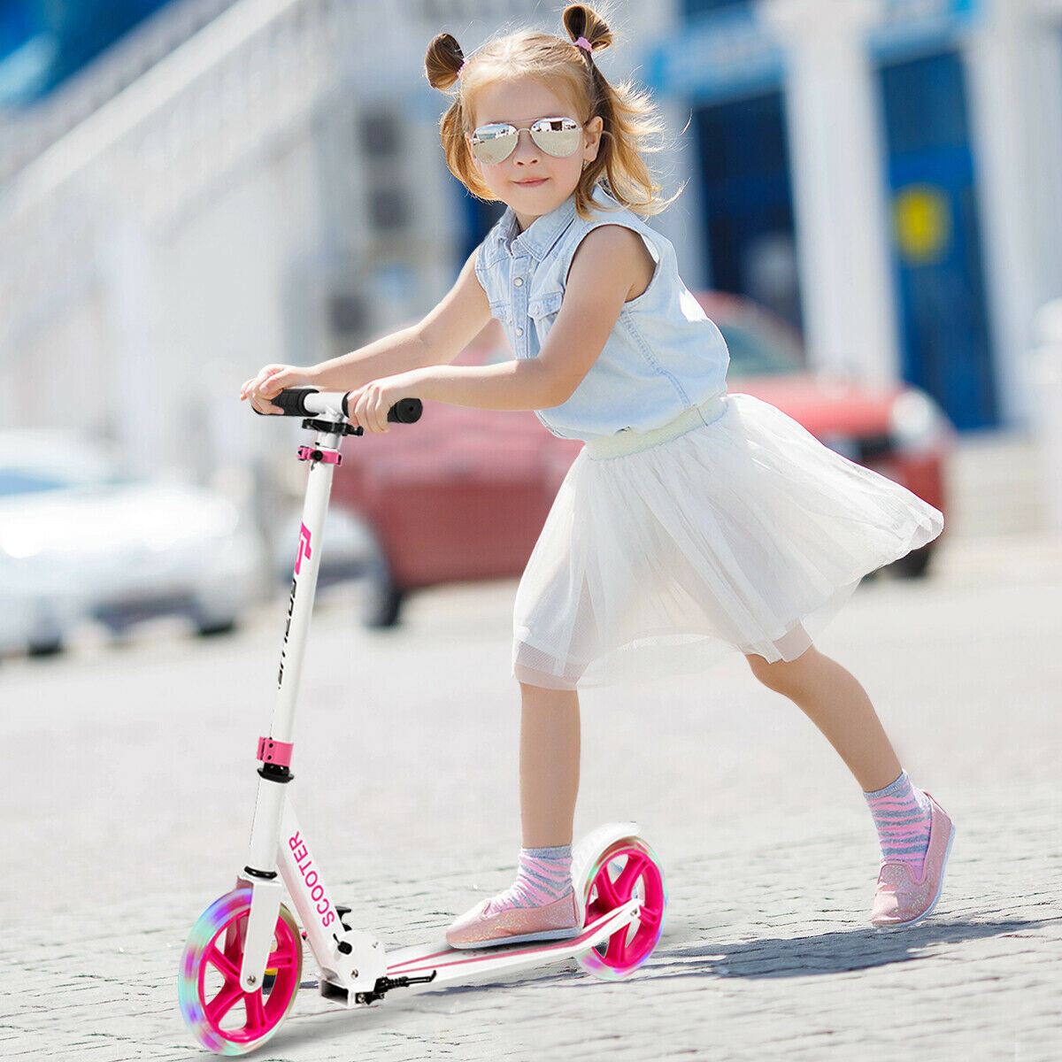 Foldable and Adjustable Kick Scooter with 2 Big Wheels and LED Lights-Pink