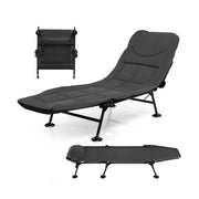 This folding camping cot measures 194 x 64 x 29 cm (L x W x H) and weighs 6 kg, which is perfect for your outdoor activities. And the backrest can be adjusted in 6 positions for you to choose from. It is made of durable oxford fabric and anti-rust powder-coated steel, which is high-strength, deformation-resistant, and durable. And the fabric is breathable to keep you feeling naturally cool in hot and wet seasons. Moreover, we also provide a soft padded mattress that allows you to enjoy superior relaxation and comfort in cold seasons. the travel cot can be folded into a compact size in seconds, and then you can store it in the car trunk for easy transportation. If you are looking for a camping cot like this, do not hesitate to place an order! Sturdy and Stable Structure: The folding camping cot is constructed of thick powder-coated steel, which is not easy to rust, peel, or chip, ensuring long-lasting durability. And it features a 6-point supporting structure, ensuring great stability and a large loading capacity of 150 kg. Comfortable Lying Experience: The camping bed is designed with a removable mattress that is filled with soft sponges, providing a warm and comfortable lying experience. And there exists a padded pillow to relax your neck and head. Besides, the bottom layer is made of 600D oxford fabric, which is waterproof, wear and tear-resistant, and breathable. 6-Position Adjustable Backrest: The folding lounge chair is designed with a 6-position adjustable backrest, allowing you to read books, sunbathe, play games or enjoy deep sleep in the lie-down or reclined mode, satisfying your different needs. And the tilted mechanism is easy to adjust. Portable and Lightweight Design: The sleeping bed can be easily folded into a compact size and the folding bed only measures 61 x 16 x 84 cm(L x W x H), which would not take up much space for convenient storage and transportation. In addition, the installation is quite easy, just assemble 6 foot covers one by one. Anti-Sink Foot Covers and Wide Applications: The folding cot is equipped with 360° swivel foot covers on the bottom that help prevent the cot from sinking into the mud or loose ground while adding stability. Therefore, it is suitable for the outdoor grass, forest, beach, lake, RV, deck, patio, indoor living room, bedroom, office, or any place you want to rest.
