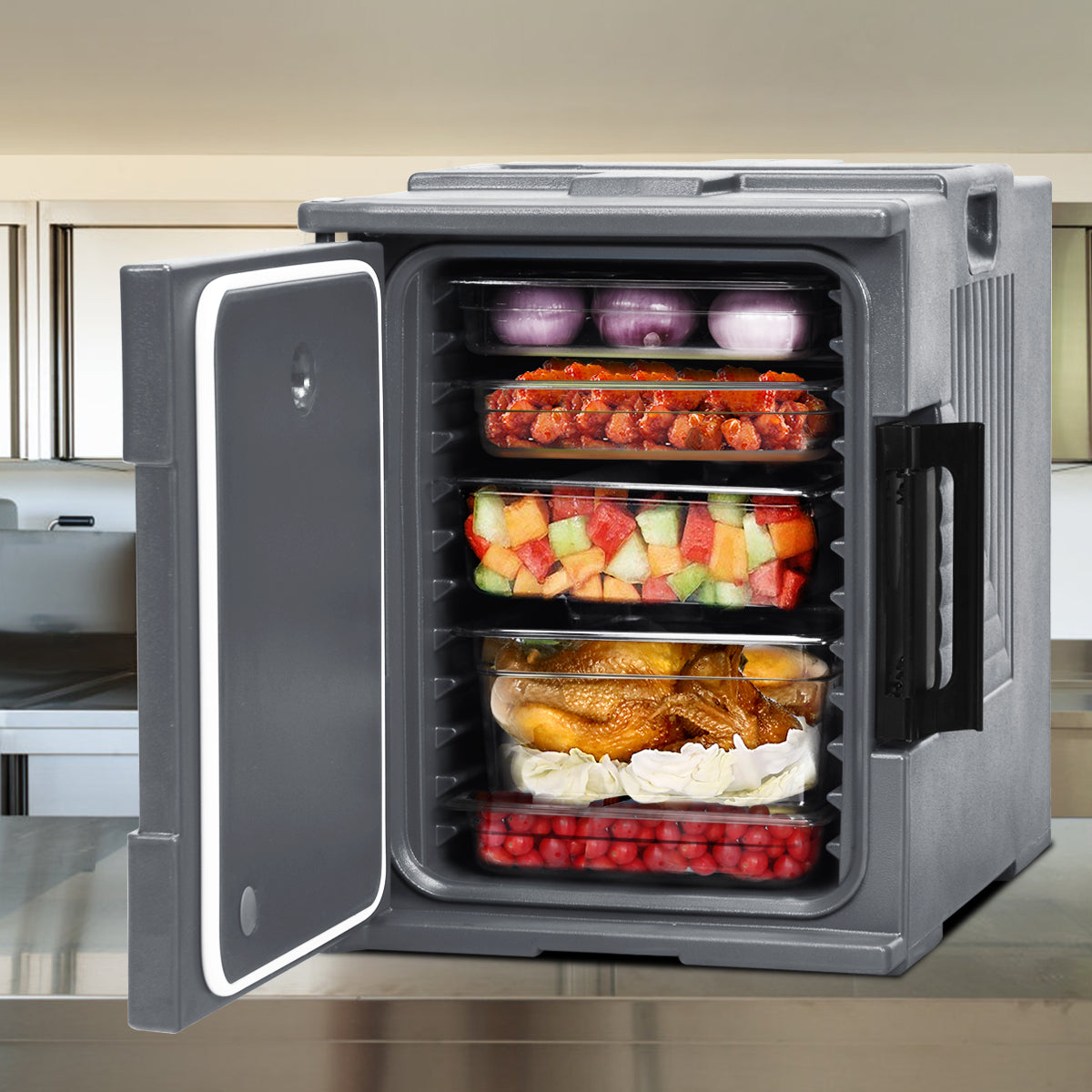 Front-Loading Insulated Food Pan Carrier for 6 Full-Size Pans-Grey