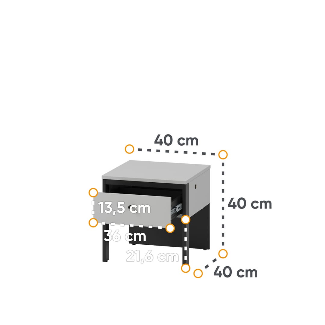 FEATURES AND SPECIFICATIONS Dimensions: W40cm x H40cm x D40cm Colour: Grey & Black One Drawer LED Lighting Included Weight: 10kg...