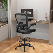 With adjustable seat height, footrest height and lumber support height, this office chair will perfectly satisfy the demands of different people. The seat is ergonomically designed with curved armrests and backrest, making your whole body fully relaxed. And the mesh fabric ensures good air ventilation for more comfort. Apart from that, the chair is super sturdy with the solid steel structure and 5-claw bottom design. The seat can be 360° swiveled for better communication. And the universal casters are designed for smooth movement. If you are looking for a matching chair for bar height table or standing desk, this drafting chair will be an awesome choice. Cozy Sitting Experience: This high-back office chair is designed with flip-up and curved armrests, providing a perfect place for you to relax arms after long-time working. Also, the ergonomic backrest fits your body curve well, effectively relieving your fatigue. The soft cushion and breathable mesh fabric highly improve the comfort level, too. Height Adjustable Design: The seat height can be freely adjusted from 57cm to 77cm according to your demands, and thus suits for different heights of tables. Moreover, the chair is equipped with an adjustable footrest for better sitting experience. And the lumber support is also adjustable to satisfy the demands of different people. Heavy-Duty Metal Structure: Constructed of high-grade steel, the main frame of the drafting chair is of high stability, enabling the chair to withstand 120 kg heavy weight. And the steel frame is well powder-coated for rust resistant. Furthermore, the premium gas rod ensures smooth and sturdy lifting up or down. And the 5-claw bottom is designed for higher sturdiness. 360° Rotatable Seat and Casters: The seat of this drafting chair can be 360° rotated, so you can swivel to any directions for better interaction with your colleagues or friends. Plus, the smooth casters at the bottom are also universal, so you can easily move the chair to any places you want. Simple Installation: Coming with all required accessories and a clear instruction, the high-back office chair is simple to put together, which won't cost too much time or effort. And the high mobility and stylish look make the chair ideal for multiple occasions, such as home and office.