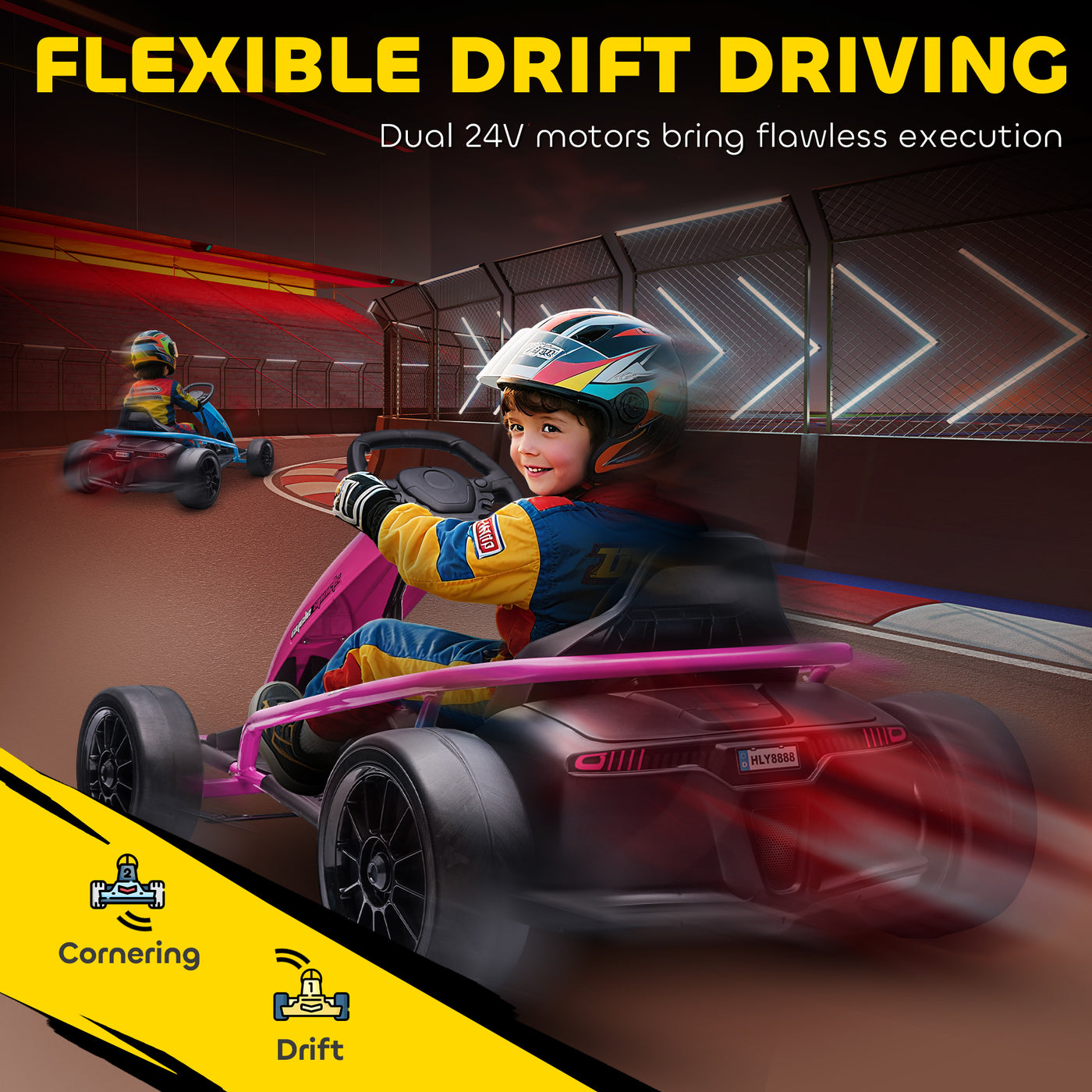 HOMCOM 24V Electric Go Kart for Kids, Drift Ride-On Racing Go Kart with 2 Speeds, for Boys Girls Aged 8-12 Years Old, Pink - Pink