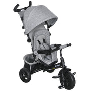 HOMCOM 6 in 1 Kids Trike with Parent Handle, Canopy, 5-point Safety Belt, Storage, Footrest, Brake, for 1-5 Years, Grey - Grey