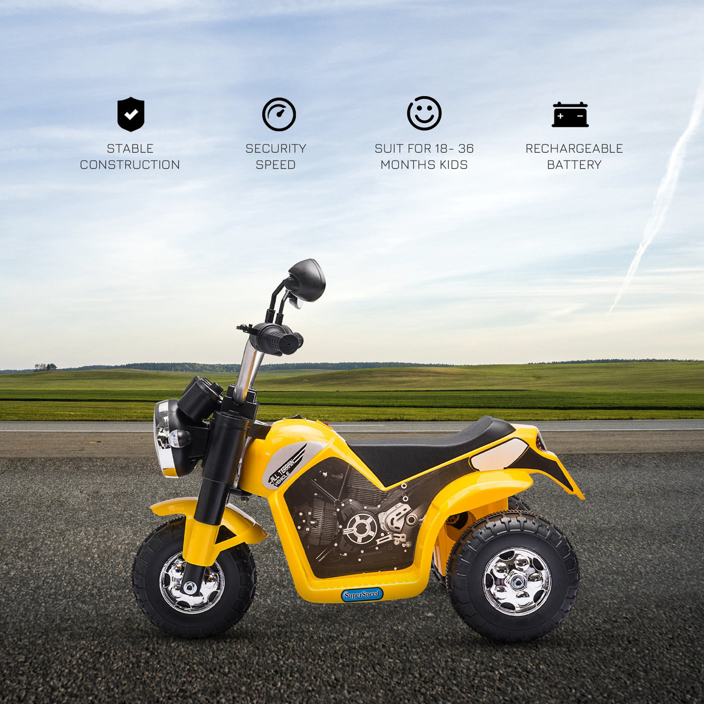HOMCOM 6V Kids Electric Motorbike 3 Wheels Ride On Toy with Horn Headlights Realistic Sounds for Girl Boy 18 - 36 Months Yellow - Yellow