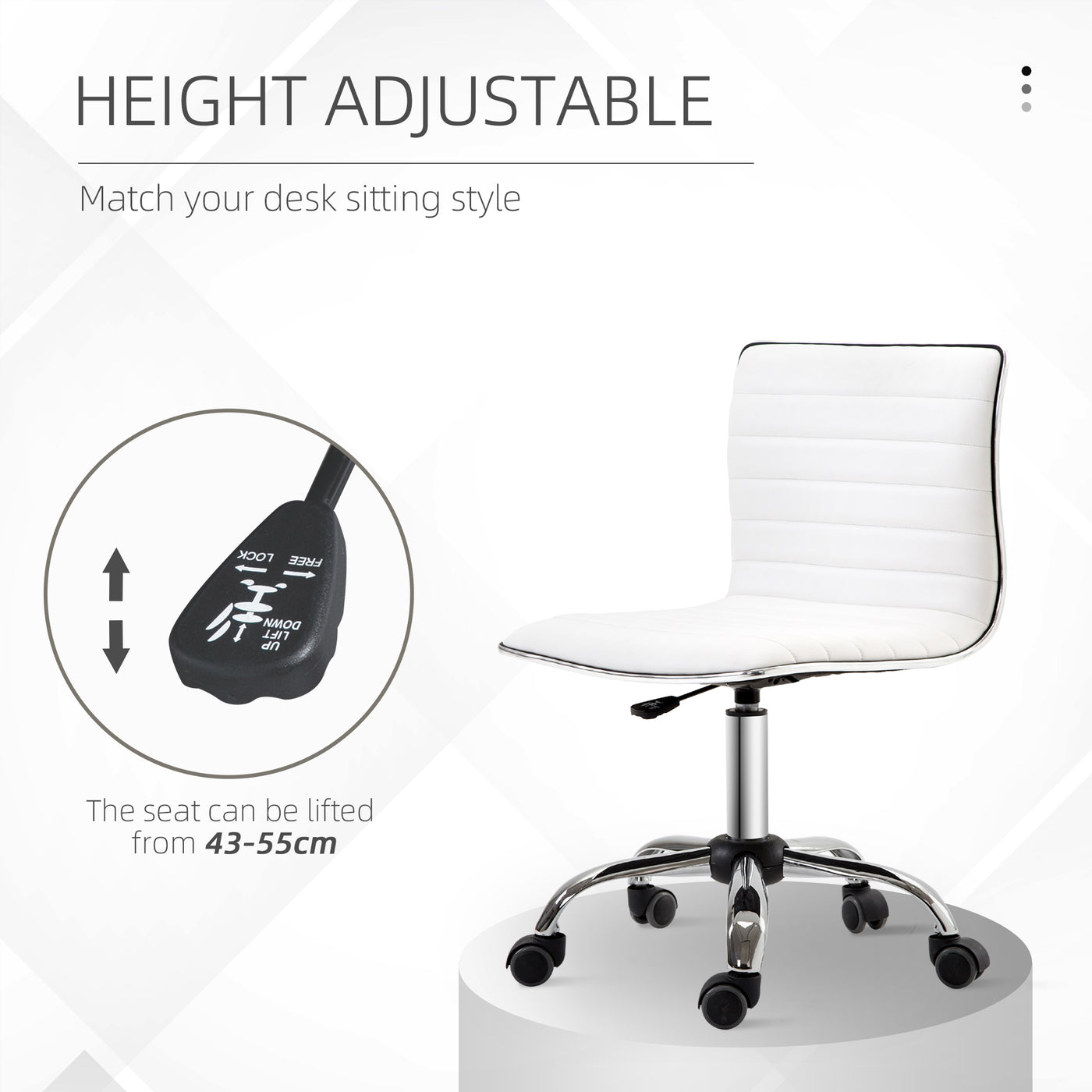 HOMCOM Adjustable Swivel Office Chair with Armless Mid-Back in PU Leather and Chrome Base - White - White