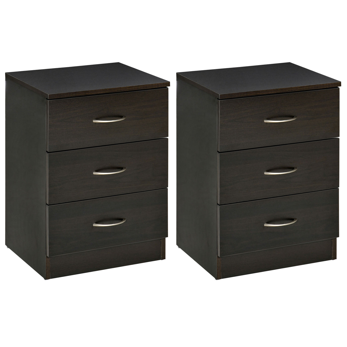 HOMCOM Bedside Cabinet with Drawer and Shelf, White Bedside Table for Bedroom, Living Room, Nightstand Side Table with Metal Rail Set of 2 - White