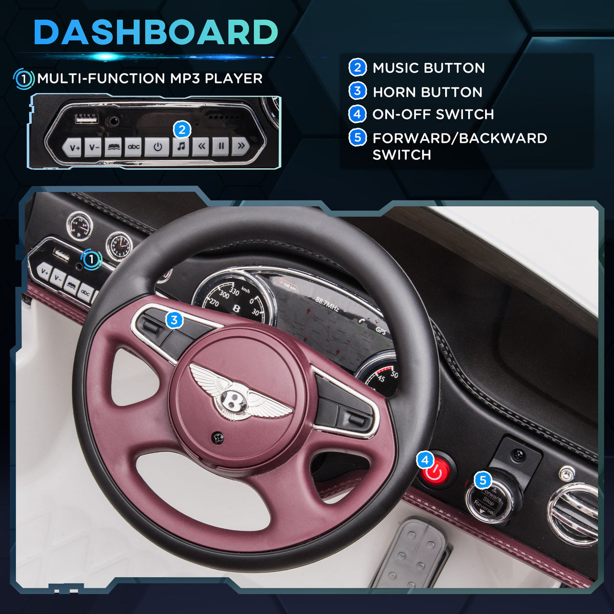 HOMCOM Bentley Mulsanne Licensed Kids Electric Ride-On Car, with Remote Control. LED lights, Music - White - White