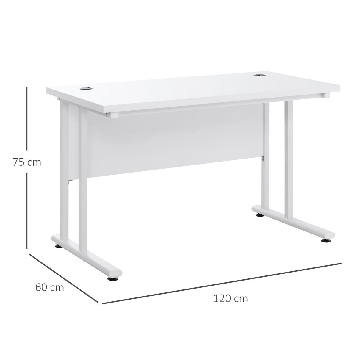 HOMCOM Computer Desk, Home Office Desk, Writing Table, 120x60x75cm Laptop Workstation with 2 Cable Management Holes, C Shaped Metal Legs for Adults, White - White
