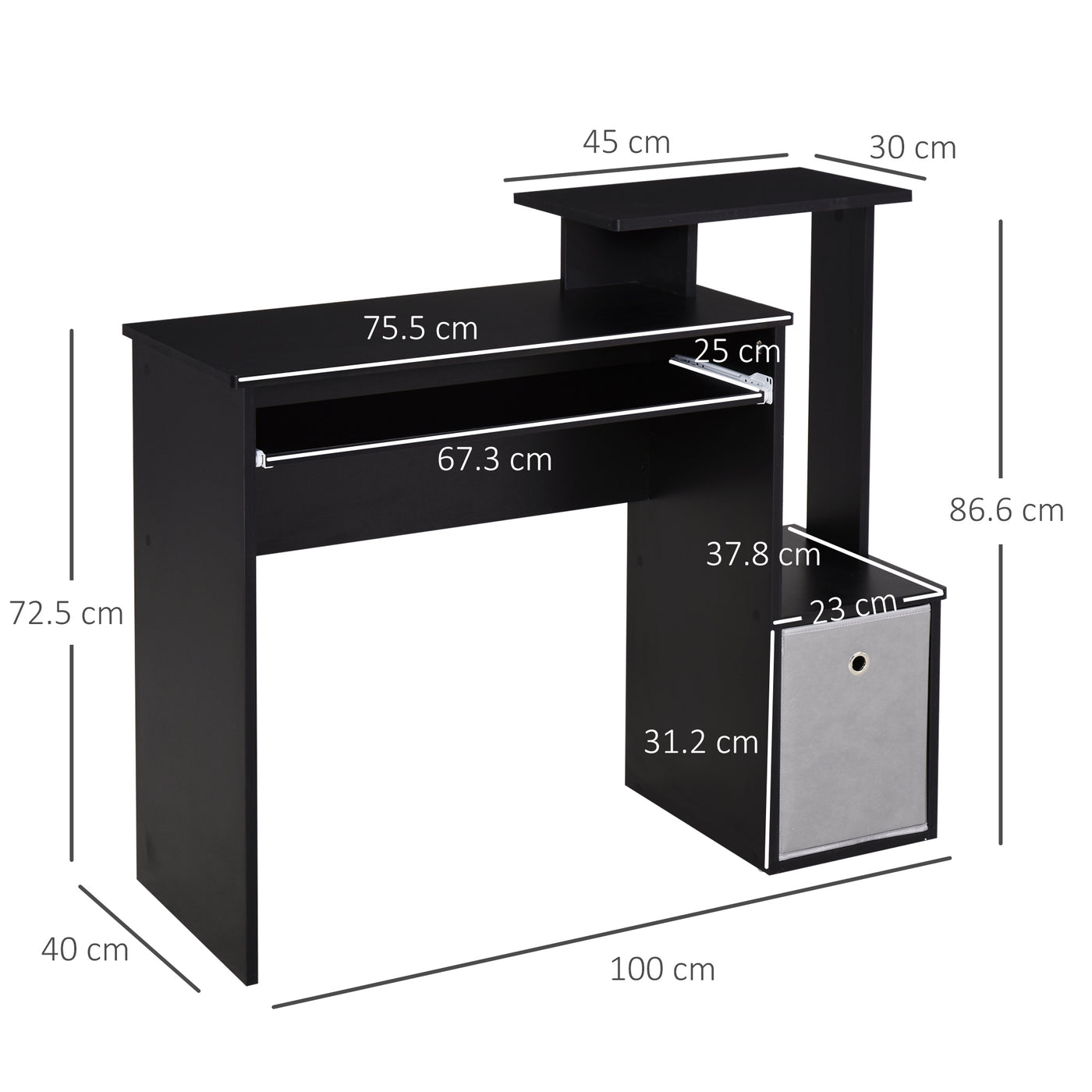 HOMCOM Computer Desk with Sliding Keyboard Tray Storage Drawer Shelf Home Office Workstation Black - Black