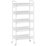 HOMCOM Five-Steel Mesh Basket Storage Trolley, with Wheels - White
