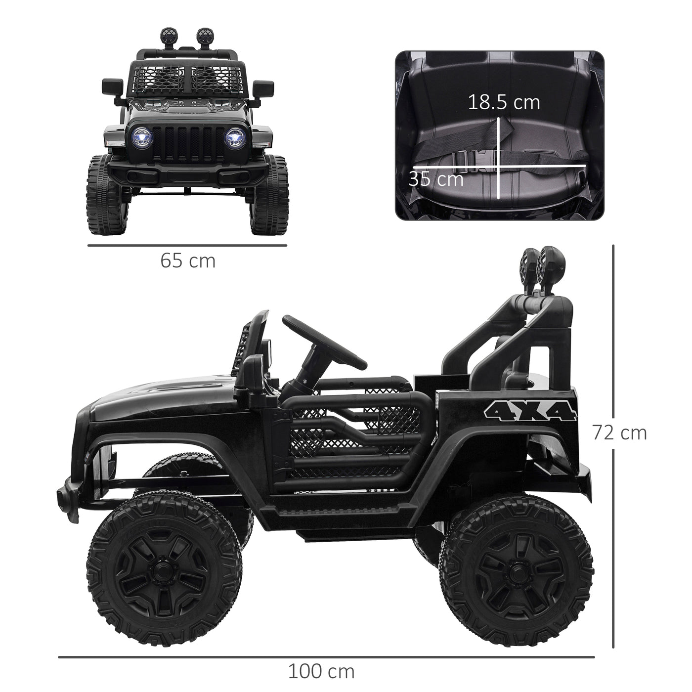 HOMCOM Kids Electric Ride On Car 12V Off Road Toy with Parental Remote Control 2 Motors Horn Lights Suspension Wheels for 3-6 Years Old Black - Black