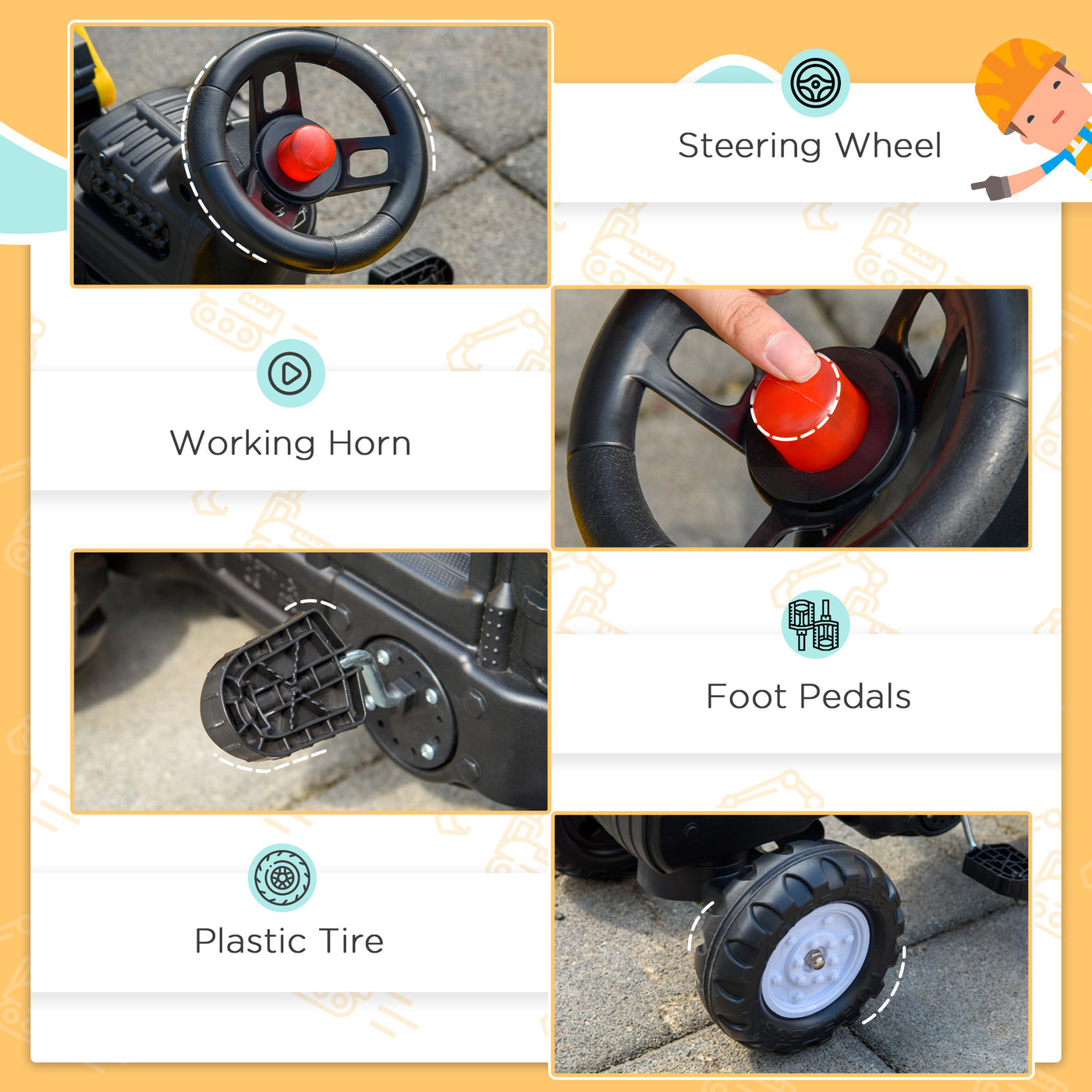 HOMCOM Kids Ride-On Construction Car, with Horn and Detachable Trailer - Yellow