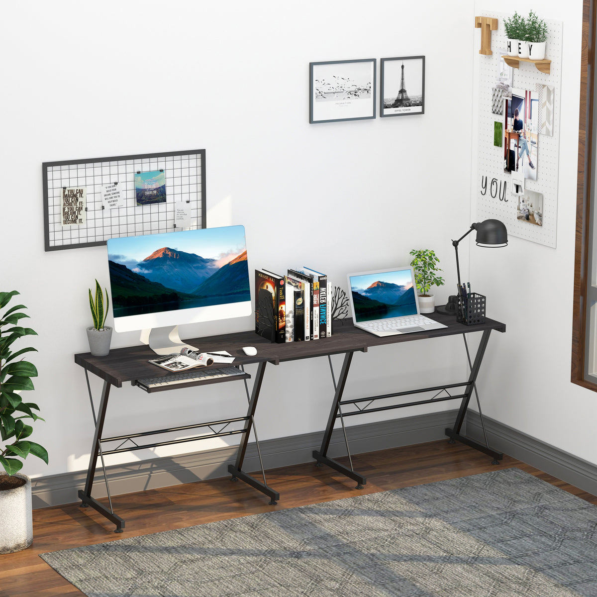 HOMCOM L Shaped Gaming Desk, Corner Computer Desk with Keyboard Tray, Work Table for Home Office, Study Workstation, 130 x 130 x 73.5cm, Black - Black